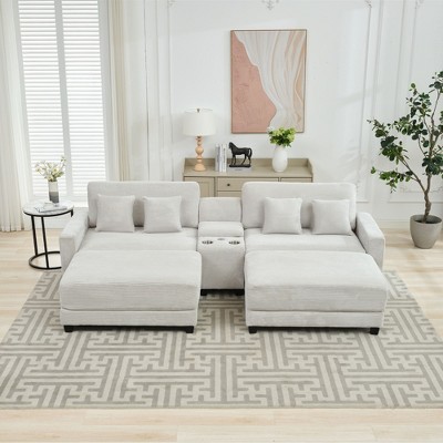 HYLEORY U-Shaped Sectional Sofa , Indoor Furniture Convertible Modular Circle Velvet Sectional Sofa Set with 2 Ottomans for Living Room