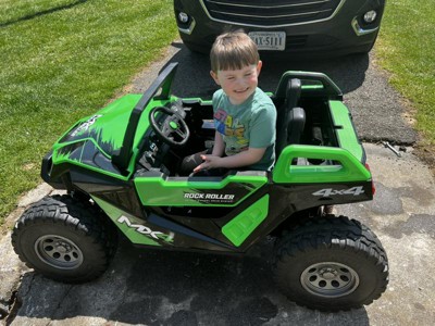 - Kids' toy battery car with a Rock Roller MX4 UTV design