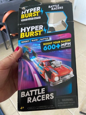Boost! Race! Battle! Hyper Burst combines traditional vehicle racing play with battle action in a refreshing way! Inspired by the ‘battle royale’ gameplay popularized by video games, Hyper Burst changes the objective from being the fastest to being the last car to survive the track! The cars are Micro Scale - charge up your car and race at over 600+ MPH scale speed! Then battle your way to victory as you knock out your opponent and become the ultimate Hyper Burst champion! The Battle Racers pack includes 1 Launcher and 1 Orange Micro Scale Car. Note: requires 2 x AAA batteries (not included).