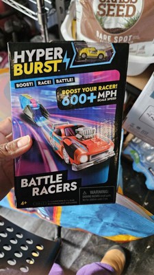 Boost! Race! Battle! Hyper Burst combines traditional vehicle racing play with battle action in a refreshing way! Inspired by the ‘battle royale’ gameplay popularized by video games, Hyper Burst changes the objective from being the fastest to being the last car to survive the track! The cars are Micro Scale - charge up your car and race at over 600+ MPH scale speed! Then battle your way to victory as you knock out your opponent and become the ultimate Hyper Burst champion! The Battle Racers pack includes 1 Launcher and 1 Yellow Micro Scale Car. Note: requires 2 x AAA batteries (not included).