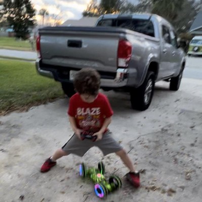 A: Hi, it depends if the vehicle is driving straight or in drift mode. The top speed should be around 9-10 miles per hour or around 15kph. If you require any more information do not hesitate to get in contact with the team. Many thanks, Diane