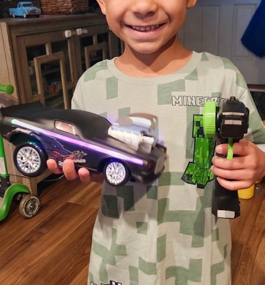 Hyper Drive RC Drifter Car, Black-Green Street Racer with LED Lights for Kids 5+