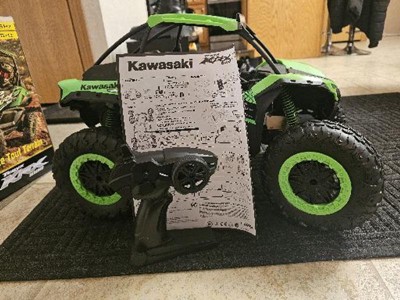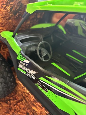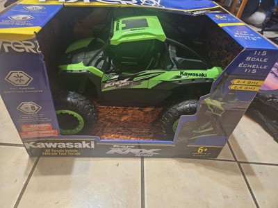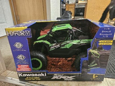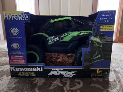 Race and explore your backyard to your heart’s content with the remote-control green and black Kawasaki KRX 1000! Complete with full function remote control capabilities, this 1:5 model of a Kawasaki KRX 1000 comes with realistic Kawasaki graphics and all the fun you could ask for. This RC vehicle is rechargeable for hours and hours of fun. Includes a 6.4V rechargeable lithium battery and USB charger. This remote-control Kawasaki vehicle is exclusive to Hyper Toys. The Team at Hyper has always taken fun seriously. We were pretty much kids when we started this business, and we still love to play with toys, so we design and build each model with the same attention to detail and passion for quality that has been the hallmark of all our previous successes. Our goal is for you to have as much fun as we are!
