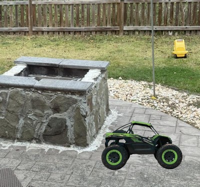 This RC car is super fun and feels like driving the real thing! It’s got big, tough tires, strong suspension, and a powerful motor, so it handles rough terrain easily. The green and black design looks really cool, and the remote control works great, even from far away. The rechargeable battery lasts a long time, so you don’t have to keep stopping to charge it. If you love exploring outside or racing in the backyard, this is perfect. My family loves it, and it’s one of the best RC cars we’ve had!