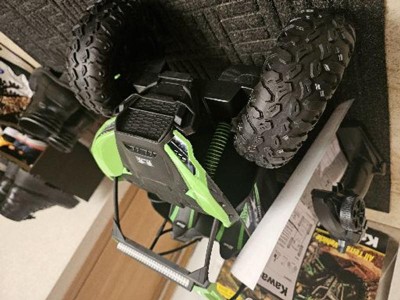 DOA. Typical cheap JUNK as usual from the country of origin. Battery charges for about 2 minutes and then indicates full charge. It will run for less than 1 minute, then dead as a doornail. Placed on a shelf in the garage where it will collect dust...next to my real Kawi KRX 1000 which actually runs like a champ.