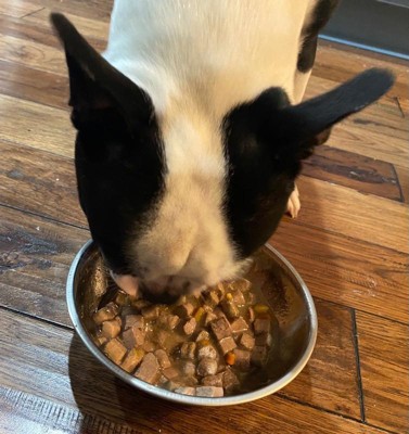 [This review was collected as part of a promotion.] I am guessing by the way my two pups scarfed it down before I could snap a photo of them enjoying it, that they were super fans, like lick the bowl long after it's gone type of fans. Didn't have that icky dog food smell that makes me bag when trying to get it from can to bowl. Lol. I'll have to just post a pic of them being cute later but Elwood and Totoro are big fans! They give it 2 paws up. Or 4...whatever.