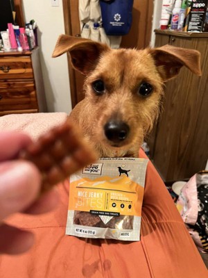 [This review was collected as part of a promotion.] My pupper is obsessed with these jerky bites! He love love loves them! I like how they are scored so they are easy to break in half. Perfect! We’re a happy family!