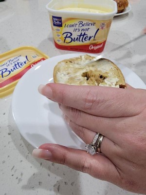 [This review was collected as part of a promotion.] I Can’t Believe it’s not Butter spread is delectable buttery spread that compliments bagels, toast, brioche buns and more. I find this buttery spread easy to spread and it doesn’t tear up my bread like many other spreads. It’s easy to transport as it comes in a nice plastic tub that keeps it sealed and fresh. It’s rich in vitamins A, D, B12 and E. I trust I can’t Believe it’s not Butter to keep me and my family safe by providing a quality buttery spread. Thank you @Infleuenster and @ICan’tBelieveIt’sNotButter