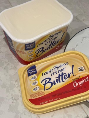 [This review was collected as part of a promotion.] I Can't Believe It's Not Butter will be a staple in my fridge. I love how versatile it is in adding to dishes and while cooking. The texture is smooth enough to scoop out directly from the fridge or spread on a slice of toast. The texture is smooth and the way I like it. With increasing grocery prices this spread is a cost effective way to add flavor to any dish. Highly recommend.
