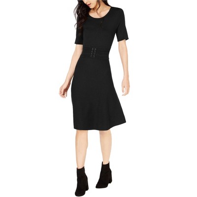 I.N.C International Concepts Womens Flocked Velvet Sweater Dress, black, X-Small