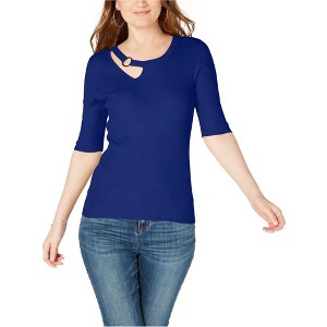 I.N.C International Concepts Womens Hardware-Embellished Pullover Sweater, brightblue, PXL