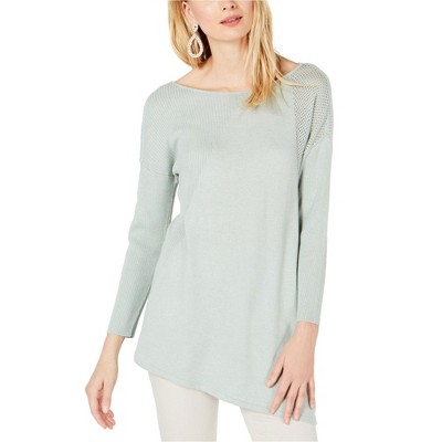 I.N.C International Concepts Womens Mixed-Knit Pullover Sweater, green, Large