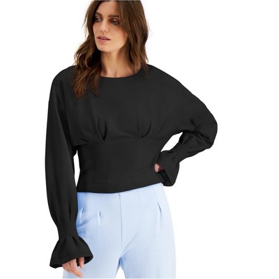 The star pattern on the sweatshirt is a delightful accent, exuding a vibe that is both casual and playful. The ruffles and crew neck style add a dash of feminine allure, making it perfect for any casual occasion. This sweatshirt with long sleeves is new and ready to bring an element of fun to your wardrobe.