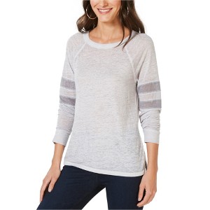- VARSITY CHIC: The I-N-C Women's Varsity Stripe Basic T-Shirt with stripes and a crew neck design adds a sporty touch to your casual wardrobe.