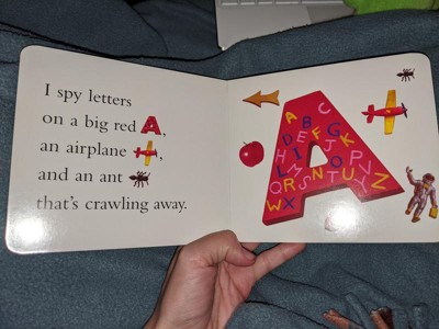 Ordered this for my 3 year old for Christmas and it arrived in the mail today, disappointed. She loves the I Spy books and other books we have where you search for objects, this book does not fall into that category. It's a typical toddler book with two letters per page and a quick sentence about the letters, no searching for them like I thought it would be. I'm keeping it because I know she will like it, but it's a very generic alphabet book. I wouldn't have purchased it if I had seen inside it but with the pandemic what can we do.