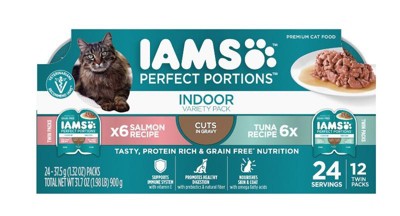 The Iams Perfect Portions Indoor Cuts in Gravy cat food is a favorite among guests and their feline companions. With convenient single-serving packaging, it eliminates waste and makes feeding easy. Cats enjoy the variety of flavors, especially the salmon and tuna, and appreciate the texture and moisture. The product is well-received for its quality ingredients and portion control, making it a great choice for both picky eaters and those who love wet food.