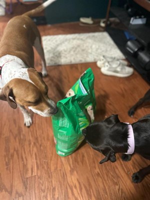 Amazing food and such a great deal!! All my dogs love it and it does well with their digestive systems. The packaging is always easy to spot in the bright green bag. I love how much you get for the price so I can feed the strays if need be. They love the scent as well every single time I feed them no matter where they are they come running!! Great real ingredients that I feel god feeding them!!