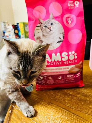Your cat is unique… that’s why IAMS makes a cat food that’s just as special as they are. Help keep your cats at their unique best with IAMS PROACTIVE HEALTH Adult Sensitive Digestion & Skin Dry Cat Food with Turkey, suitable for adult cats of all sizes and ages. Designed for digestive health, this kibble recipe contains a unique fiber blend of prebiotics and beet pulp, which supports your cat’s healthy digestion and aids nutrient absorption. Made with real turkey as the first ingredient, this cat food dry recipe is formulated without soy or wheat. Plus, it helps your adult cat maintain strong muscles with high quality protein and a great flavor cats love. And for cats with sensitive skin, this formula is made with omega-6 and omega-3 fatty acids to support a sleek, shiny coat and nourish sensitive skin, so your kitty can look and feel its best. So, if you’re looking for a sensitive digestion and skin dry food made with real ingredients cats crave, get your paws on this… and keep your feline happy, healthy, and ready to pounce with IAMS.