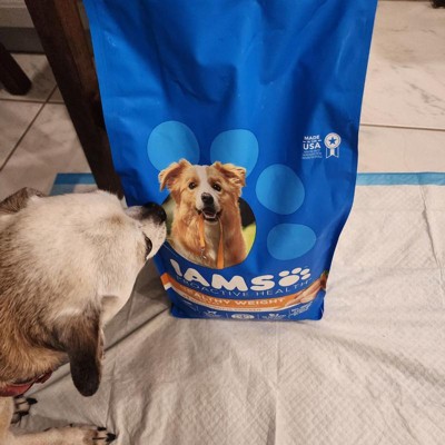 Veterinarians recommend IAMS. IAMS Proactive Health Healthy Weight Large Breed Dry Dog Food Chicken and Whole Grain Recipe is made with real chicken as the #1 ingredient and contains no fillers or artificial flavors; ingredients are natural as defined by the Association of American Feed Control Officials (AAFCO). The Proactive 5 health benefits for IAMS Healthy Adult diets focus on five key health areas: healthy muscles, energy, digestion, immune system, and skin and coat. IAMS Proactive Health Healthy Weight Dog Food is a large breed dry dog food designed with kibble crafted for large breeds and helps support your adult dog's weight management journey. This weight management dog food is formulated with L-Carnitine to help maintain healthy metabolism and facilitate the oxidation of fat, promoting a healthy weight and making this nutritious dog food a thoughtful choice for dogs that need a little extra help staying in shape. A tailored blend of natural fiber and prebiotics helps support your dog's healthy digestion, while high-quality protein supports strong muscle. A tailored blend of barley, corn, and sorghum slows the release of carbohydrates and decreases insulin response, supporting healthy energy and helping your dog maintain a vibrant, energetic life. IAMS Proactive Health Healthy Weight Large Breed Dry Dog Food is your partner in maintaining your dog's healthy weight and overall well-being.