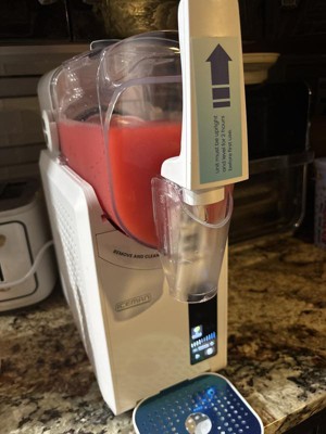 - WATERPROOF TOUCH CONTROLS: Set up your slushies with the intuitive control panel, featuring a Defrost | Clean button to cycle water through the tank and an Add Sugar alert so everything freezes properly.