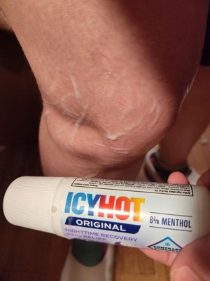 [This review was collected as part of a promotion.] "Icy Hot Nighttime Recovery Roll-On has been a lifesaver for my sore muscles after a long day. The roll-on application makes it easy to target specific areas of pain, and the cooling sensation provides instant relief. The nighttime formula helps me relax and unwind before bed, and I wake up feeling more refreshed and less stiff. The scent is calming and soothing, adding to the overall relaxing experience.