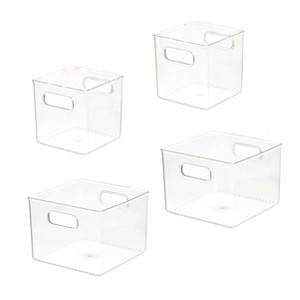 Bring home stylized kitchen storage and organization with the iDesign 4-Piece Fridge Organizer Bin Set. With four clear plastic bins included — two cube bins measuring 6" x 6" x 6" and two rectangular bins measuring 6" x 6" x 8" — this kit makes it easy to upgrade your refrigerator organization. The produce bins are ideal for storing fresh fruits and veggies in the fridge. They are also ideal for storing single-serve pouches, packets, snacks, and more in the freezer and pantry. Plus, the transparent sides make it easy to see what's inside at a glance. These organizers are easy to pair with other bins in the iDesign collection (sold separately) for customized storage that fits your unique needs. These iDesign kitchen storage bins are designed and made in the US. Made of more than 50% recycled plastic, these fridge bins stand up to everyday use. iDesign offers innovative storage products at a reasonable price. We're a global leader in housewares with a mission to make every day easier with innovative products designed to help people organize and enhance their homes with style. With iDesign, you can live simply every day.