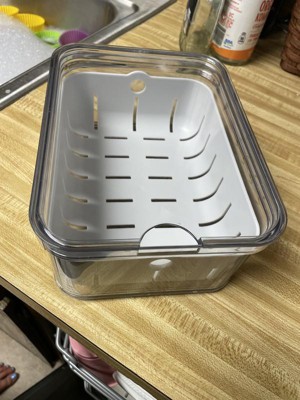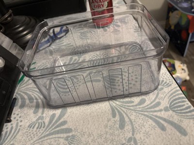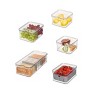 Bring home stylized kitchen storage and organization with this iDesign 5-Piece Fridge Organizer Bin Set. With five clear plastic bins included—one berry bin, one small divided bin, one large divided bin, and two small bins—this kit makes it easy to upgrade your refrigerator organization. The berry bin features a double-layered design with a removable basket insert to strain the water from your produce, keep moisture to a minimum, and keep berries and other produce fresh. The large food storage bin includes removable dividers that provide up to three sections for storing pre-cut or smaller fruits and veggies, and the small divided bin provides up to two sections of storage. The two small food bins are the ideal size for storing produce as well as single-serve pouches, packets, snacks, and more. All produce saver containers include coordinating lids with integrated notches to keep produce fresh and prevent excess moisture. Plus, the transparent sides make it easy to see what's inside at a glance. These stackable organizers are easy to pair with other bins in iDesign collection (sold separately) for customized storage that fits your unique needs. Made with durable post-consumer, BPA-free recycled plastic, these fridge bins stand up to everyday use and are easily cleaned with soap and water. Handwash only. This set, with some help from iDesign, will help you Make Your Best Home.