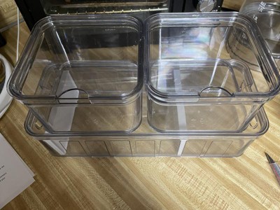 - MODULAR AND STACKABLE: These clear plastic refrigerator bins can be easily paired with other The Spruce by iDesign food storage containers for convenient, stacking storage. Plus, the clear design makes it easy to see what's inside at a glance.