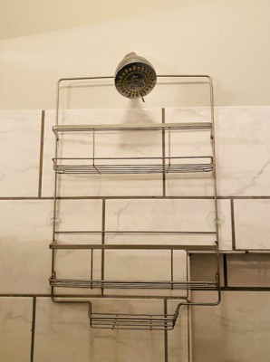 Organize your shower with the iDesign Everett Wide Shower Caddy! This large hanging caddy is placed over any shower head for additional storage. The rust-resistant satin finish adds a classic look and will stay looking new for years of quality use. The two metal wire racks allow for water drainage while storing your shampoos, soap, body wash, shaving cream, and other bath items in the two storage baskets. It features a non-slip shower head clip and two large plastic suction cups to keep the caddy secure in place. Measuring 15.5" x 4.14" x 25.21", you are sure to have space for all of your bath time necessities in the iDesign Everett Shower Caddy. With iDesign by InterDesign, you can #LiveSimply every day.