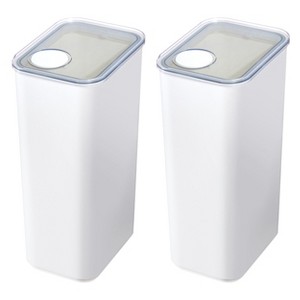 - AIRTIGHT CANISTER - The iDesign Eco System Airtight Kitchen Canister elegantly decants flour, sugar, rice, and other dry goods, lending a clean, classic look to any pantry or open shelving; The airtight, lift-off lid keeps contents fresh, while the clear container allows you to keep an eye on supply levels so you will never run out of your favorite ingredients again; Its stackable, space-saving design makes this an instant pantry favorite; Set of 2