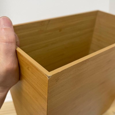 Designed with style and function in mind, the iDesign Formbu Waste Basket provides convenient trash disposal wherever you need it. This compact waste can fits into tight spaces in the bathroom, kitchen, bedroom, laundry room, office, dorm, and more. The versatile design makes it great for use as a trash can or recycling bin, and it can also be used to provide extra storage space for cleaning supplies. The contemporary lines, rectangular shape, and natural wood finish add a touch of style to any room. Made with durable MDF with bamboo veneer, this waste can stands up to every day use and is easy to clean with mild soap and water. This slim-profile wood trash bin measures 10.5" x 5.75" x 10" and is ideal for compact spaces around the home. With iDesign by InterDesign, you can #LiveSimply every day.