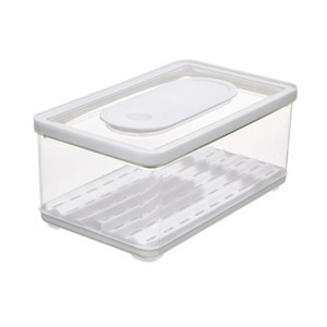 Sustainability meets storage with the iDesign IDFRESH Large Produce Storage Bin. This eco-friendly storage container is designed to keep produce fresh and extend the life of your favorite fruits and veggies. The airtight lid with integrated vent and removable cover allow you to adjust and control the humidity inside the bin, while the bottom compartment can be filled with water to provide extra humidity. The removable ridged insert reduces bruising and provides additional airflow, keeping the produce stored at the bottom just as fresh as the produce on top! This versatile bin can be used both in the fridge and on the countertop for fruits and veggies that need time to ripen. The clear sides make it easy to see items stored inside, and it can be stacked with additional bins or bowls in the IDFRESH collection for an effortlessly coordinated and organized kitchen. It is also dishwasher-safe for quick and easy cleaning. This reusable container is made with recycled BPA-free plastic for a more environmentally-friendly storage option. With its 25-cup capacity, this produce bin maximizes storage space on refrigerator shelves. With iDesign by InterDesign, you can #LiveSimply every day. At iDesign, we are committed to protecting the future of our planet. We know even the smallest choices can lead to big changes, and we're committed to making the right choices every day like using recycled materials to create exciting new product lines. Good for you and good for the planet.