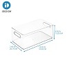 Upgrade your kitchen storage with the iDesign Kitchen Binz. This deep stackable bin creates instant organization in the refrigerator, freezer, or pantry for items such as bottles, cans, fruit, vegetables, snack bags, and more. The open top design ensures contents are always visible and accessible, while the built-in handles allow for portability and quick reorganization. This modular bin can be stacked on top of other organizers in the Kitchen Binz collection (sold separately) to maximize storage space. Designed with versatility in mind, it can also be used in the bathroom, bedroom, closet, office, laundry room, or anywhere you need additional storage. Made with durable BPA-free clear plastic, it stands up to every day use and is easy to clean with mild soap and water. Measuring 8" x 6" x 14.5", this longer-length organizer is ideal for deeper spaces around the home. With iDesign by InterDesign, you can #LiveSimply every day.