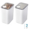 - AIRTIGHT CANISTER - The iDesign Eco System Airtight Kitchen Canister elegantly decants flour, sugar, rice, and other dry goods, lending a clean, classic look to any pantry or open shelving; The airtight, lift-off lid keeps contents fresh, while the clear container allows you to keep an eye on supply levels so you will never run out of your favorite ingredients again; Its stackable, space-saving design makes this an instant pantry favorite; Set of 2