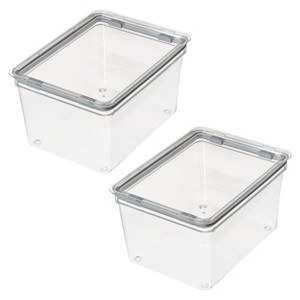 Turn any underachieving pantry into one that's hyper-organized with the iDesign Fresh Large Food Storage Bins. The easy, lift-off lids feature an airtight seal to ensure your favorite ingredients stay fresh. These food-safe storage bins bring a sleek, clean look to open shelving, and the transparent construction allows you to keep an easy eye on supply levels so you will never run out of your favorite ingredients again. With iDesign, you can live simply every day.