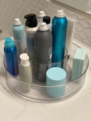 [This review was collected as part of a promotion.] I received this product for free in exchange for my honest review. Our bathroom storage space is tight, and although I’ve organized it once it was hard to keep it consistently that way. This turntable tool is a game-changer! It fit more product than the standard bin I was using, and helped me create a space for headbands. I love that I can access everything so much easier than I could before. The only downside is I was hoping it could fit on top of the existing bins, but the dimensions didn’t align. Not sure if it’s because of the size or my bins weren’t idesign brand. Would definitely recommend for those small storage spots!!
