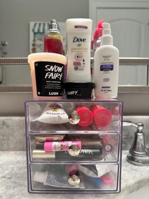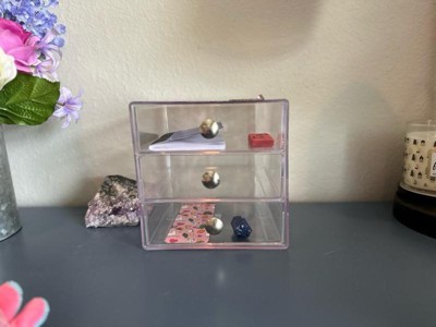 [This review was collected as part of a promotion.] I used this cute acrylic 3 drawer organizer in my bathroom for several items such as makeup, face masks, etc. It s a nice size, and I like that it’s clear so I can easily see everything in it. My only critique is that the drawers can fall out if you pull too far, so you have to use with some caution. Overall, it’s a nice addition to my bathroom!