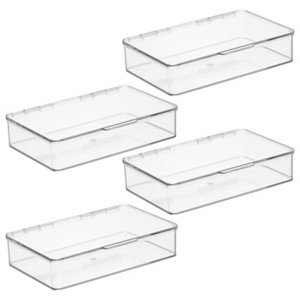 - SMART STORAGE - Create a functional storage solution anywhere you need with the iDesign Hinged-Lid Storage Box; Its generous capacity has room to store your most reached-for essentials, from small kitchen gadgets to pantry staples to snacks and more; The versatile design blends seamlessly with your decor, allowing you to keep various kitchen essentials accessible and contained; Set of 4