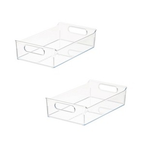Streamline your kitchen organization and storage with the iDesign Kitchen Storage Container Set. They’re a quick and easy addition to your home that will bring functional beauty and organized style in the fridge, freezer, cabinet, and pantry. This plastic box features integrated handles that allow for quick access and easy reorganization. The open top design of the pantry storage bin ensures contents are always accessible. The transparent design of this pantry organization bin provides visibility so you know when it's time to restock and matches any kitchen décor. This set of clear fridge organizers includes two bins in various sizes.