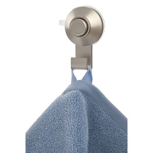 iDESIGN Set of 2 Everett Push Lock Suction Single Hook Silver: Metal, Satin Finish, Bathroom Organizer