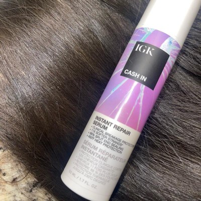 [This review was collected as part of a promotion.] IGK Cash In Instant Repair Hair Serum helps hair to have a soft and silky feel. I thought my hair instantly looked healthier and softer after using. It also has 450 degrees of heat protection which helps protect your hair when styling with hot tools. When using this product my hair felt softer, stronger and looked less damaged. I would definitely recommend this product to family & friends.