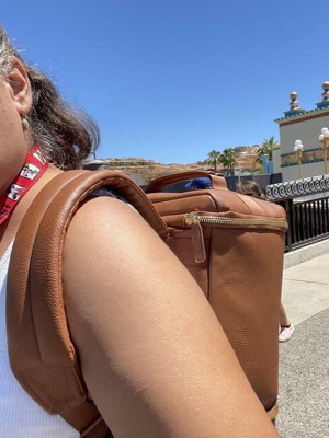 • Features multiple carry options: adjustable, padded shoulder straps & top grab handle with a vegan leather wrap