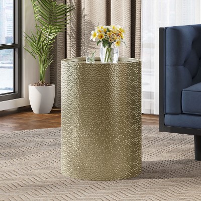 Elevate your living space with the ultra-chic IKAKY Side Table. Crafted with meticulous attention to detail, this piece showcases a sophisticated blend of gold and mirrored finishes that will add a distinctive touch to any room. Skillfully constructed from sturdy iron, this table epitomizes a fusion of style, elegance and durability. Offering a practical surface for displaying your favorite decor or hosting a cup of coffee, the IKAKY Side Table provides an impeccable addition to your home or office. Revel in the luxuriant appeal of this trendsetting piece and make a stylish statement.