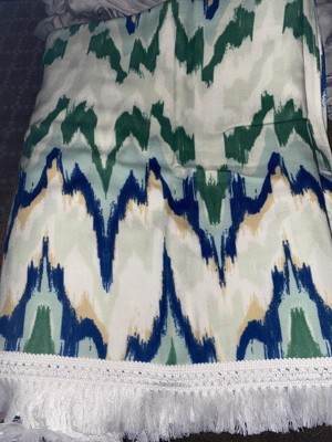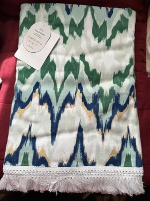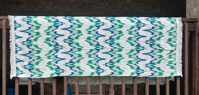 Enjoy a day of sunny beachside fun with this Ikat Green Jumbo Beach Towel from Threshold™. Made from 100% cotton, this oversized bath towel feels soft against your skin and helps you dry off quickly. Great for spreading on the sand or a chaise lounge, it features an ikat pattern in green, blue and tan hues on a cream background for a vibrant look, while fringed trim finishes the design with extra flair.