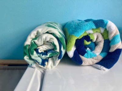 Jumbo is definitely the word for this beach towel! I love the green print pattern and the fringe lining on the edges of the towel. It is big enough to hold two people if lying on the sand at the beach. Machine washable and tumble dry.
