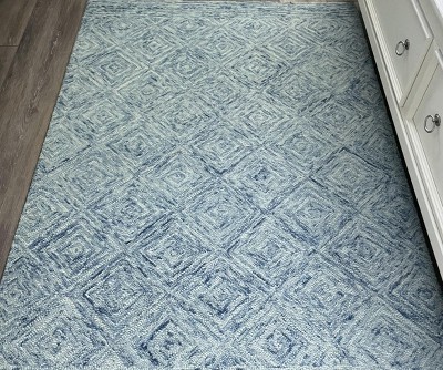This is a beautiful light blue wool rug that adds color and texture to my bedroom. I ordered the 4 ft by 6ft size to put at the bottom of my bed. I receive many compliments from family and friends.