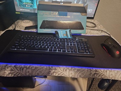 [This review was collected as part of a promotion.] I bought this a couple days ago for my computer and my monitor. It works really well. It fits perfectly on my desk. The lights around it were like showing in the picture. Charging pad works for your phone. Overall, it is a good item. You should get it.