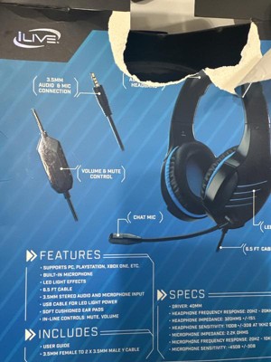 The iLive Electronics™ IAHG19B Gaming Headphones are universally compatible (PC, PlayStation, Xbox etc.) and offer the best that gaming can offer. Comfortable ear pads and an adjustable headband makes these a dream for your longest gaming sessions while the built-in mic, 6.5 ft. cord and in-line controls (mute/volume) meet all your gaming needs. A USB plug for LEDs adds a touch of fun while you destroy your enemies and become a gaming champion.