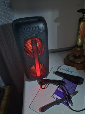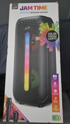 Time to bring on the jam with Jam Time from iLive Electronics™! This Bluetooth® party speaker system features color-changing LED lights and ultra-lightweight portability for your party on the go. Plug in the included microphone to add your voice to the music! Use Bluetooth® streaming or the aux input, microSD™ Card slot, or USB port for more playback options. You can also wirelessly connect another Jam Time speaker to deepen the sound and get the party going. The built-in speakerphone makes it easy to answer calls hands-free.