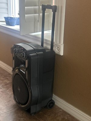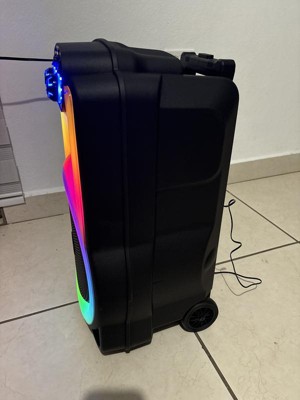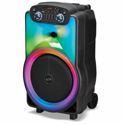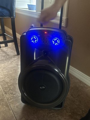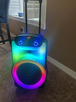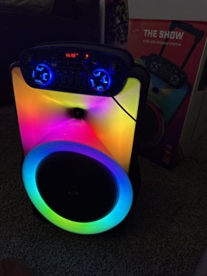 Put your sound on blast with The Show Wireless Speaker System. The retractable handle and roller wheels make taking your party on the road a breeze. Mesmerizing LED light effects add an extra level of production value to your musical performance. And with the microphone input, you can feel empowered to put on a show of your own.